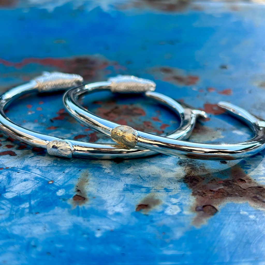 古代の「マカウ」を忠実に再現するという、当ブランドのマカウペンダントの思想を踏襲したバングルです。