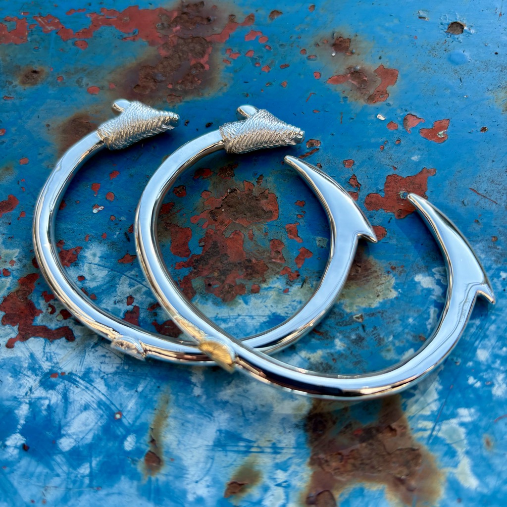 現在流通しているMakau(マカウ/ハワイ語で「釣り針」)モチーフの多くは、装飾的な彫刻やデザイン性の強いシルエットで表現されています。