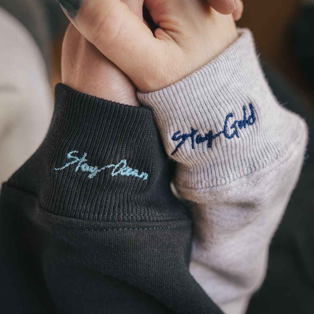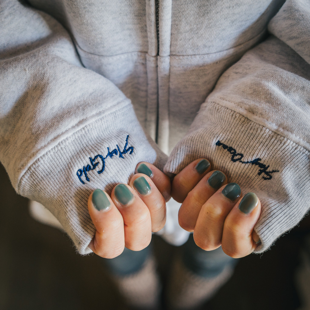 すべて刺繍にて、プリントでは出せない奥行きと品を選びました。