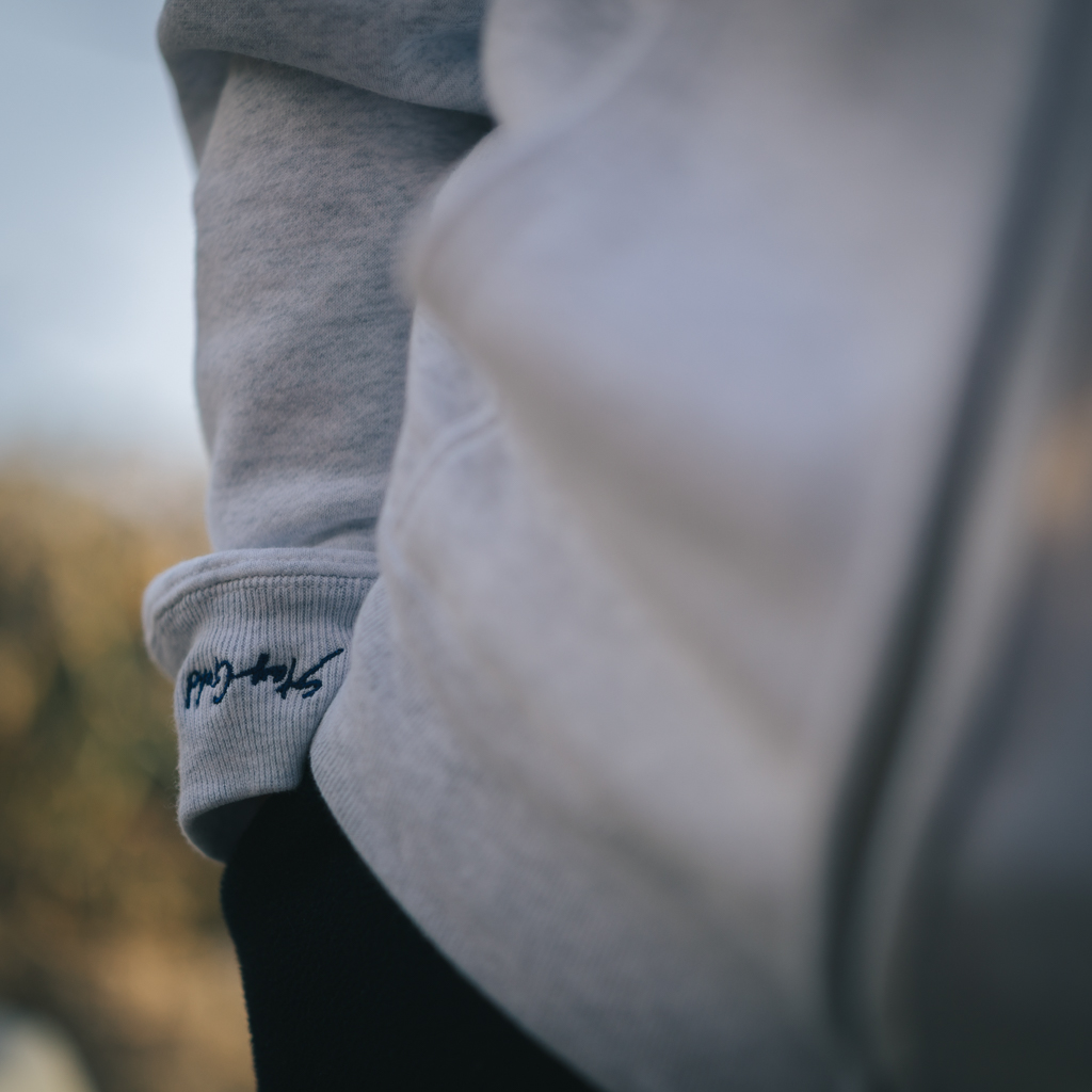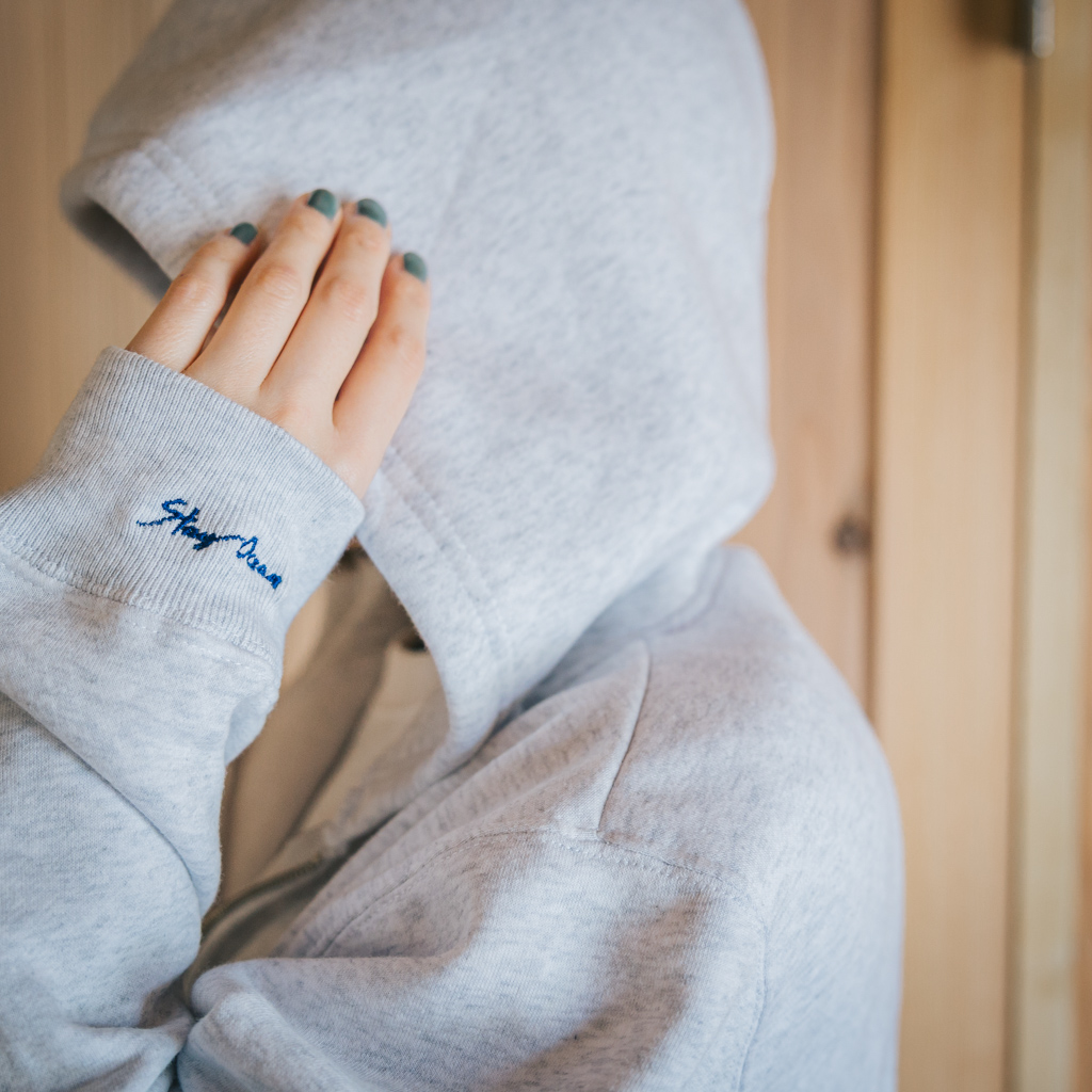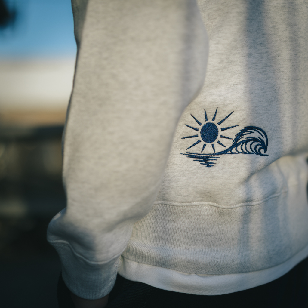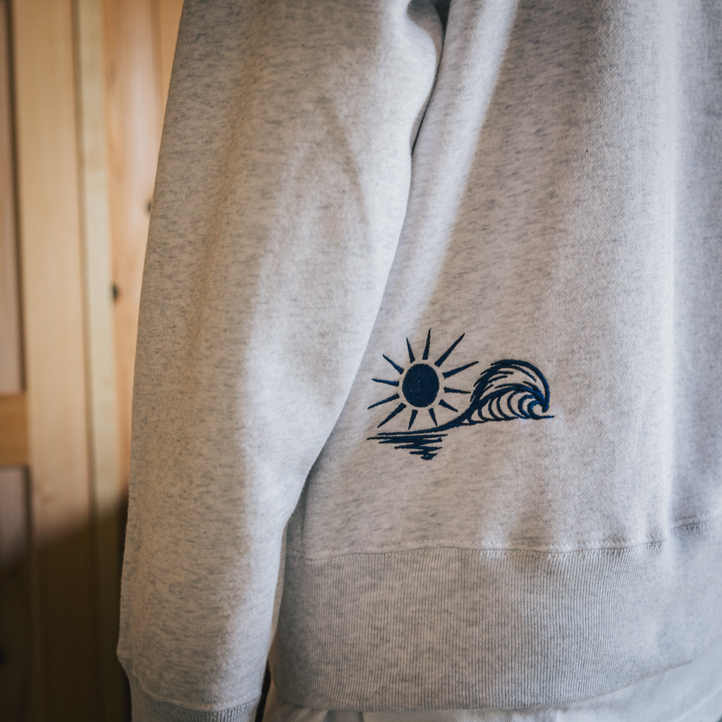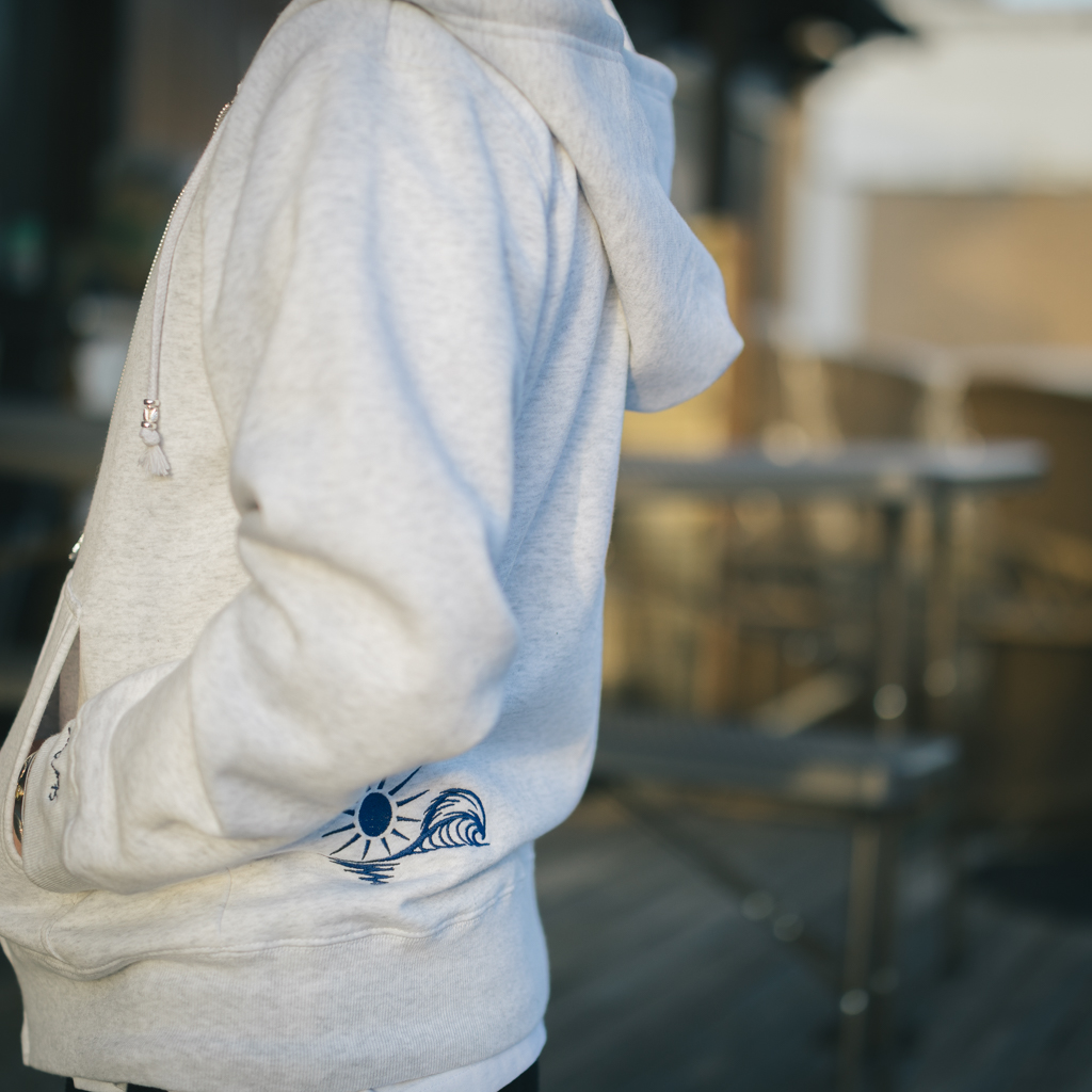 ロゴや文字は、海の色を思わせる深みのあるネイビー。