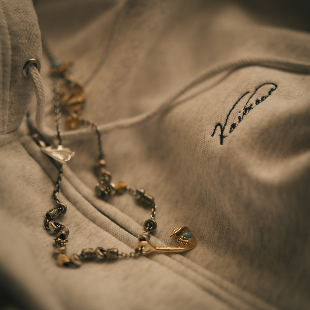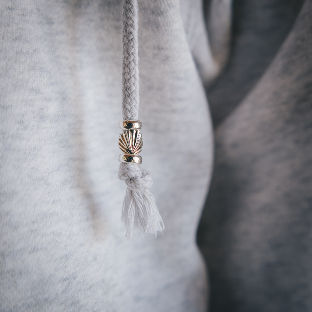 ドローストリングには、当店Lサイズのシルバービーズを装着可能。