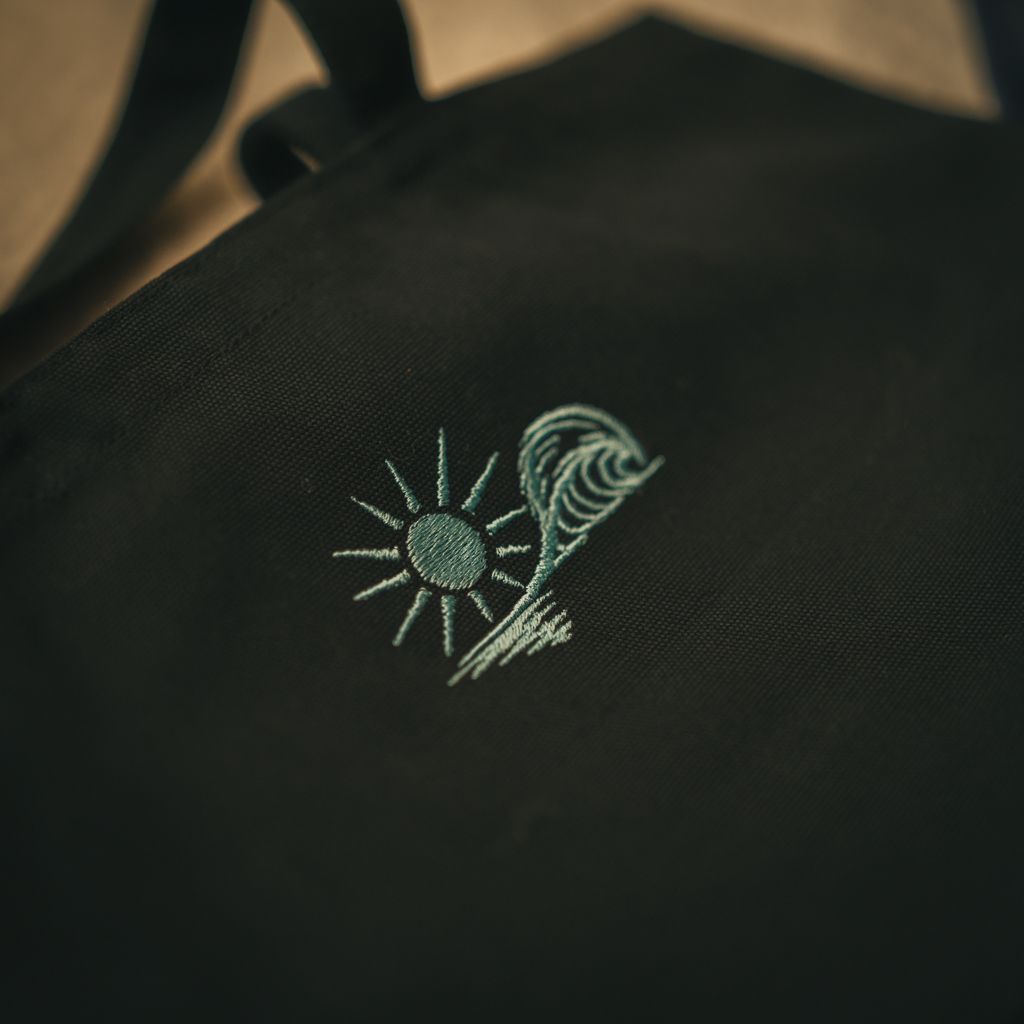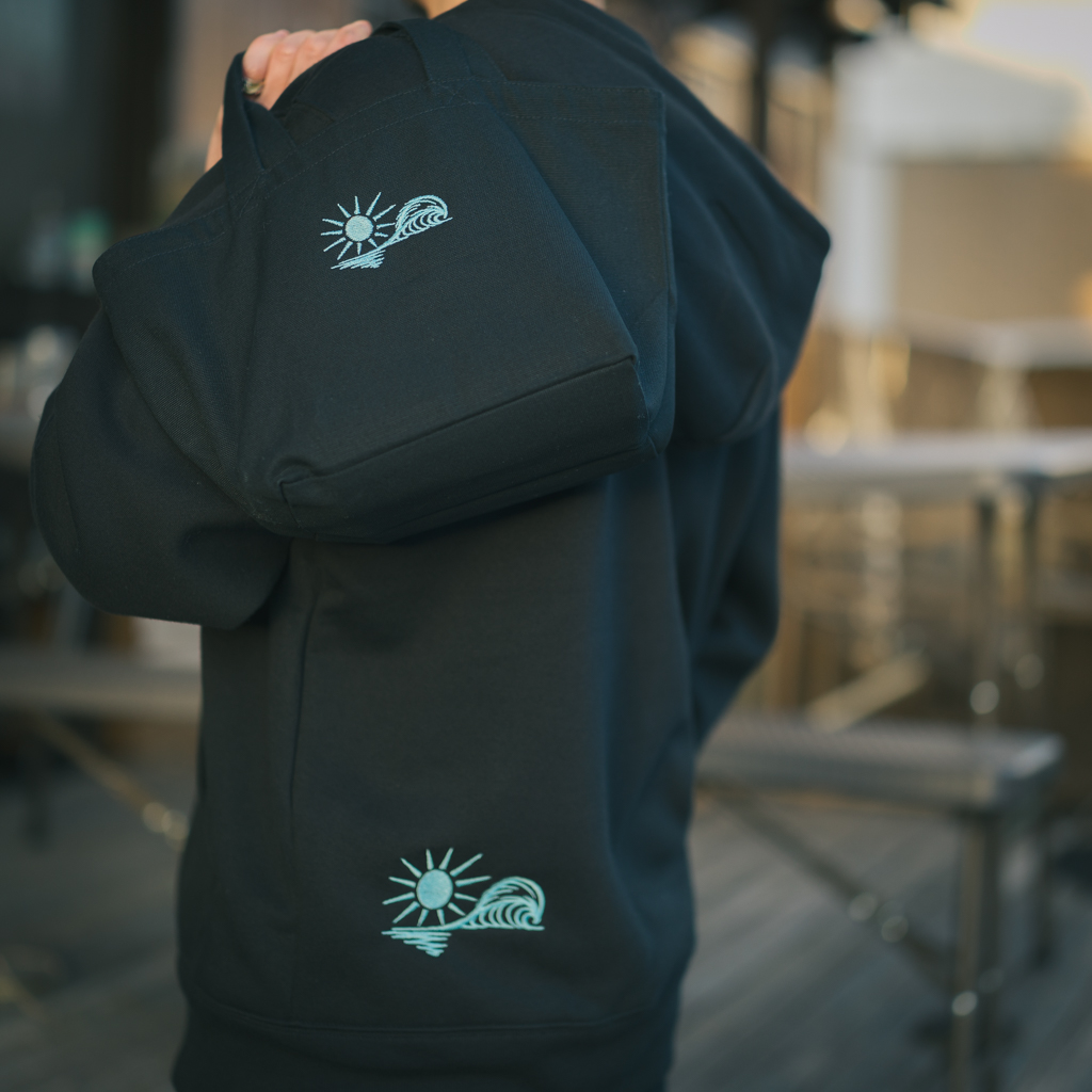 ロゴと文字は、フーディと同じくすべて刺繍。