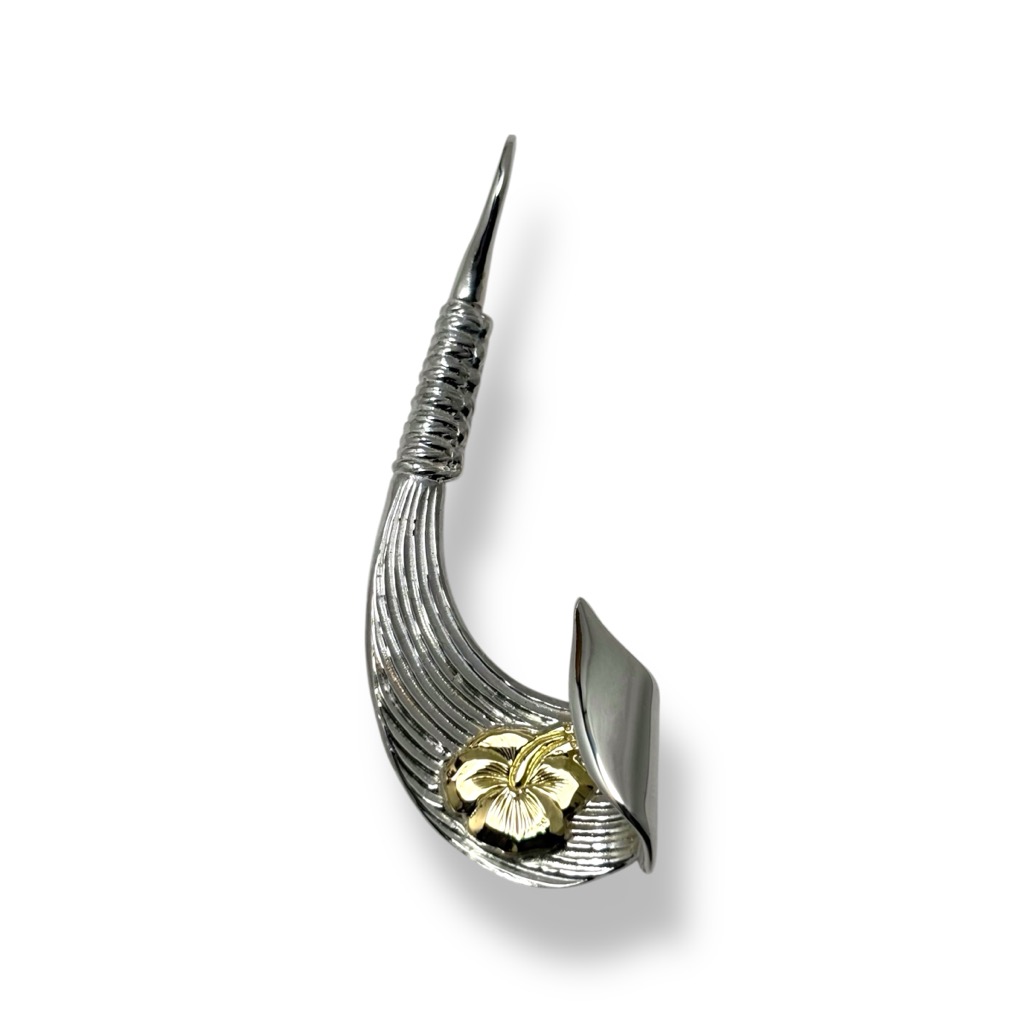 幸せをつかむラッキーアイテムとして多くの方に愛されている、ハワイ語で「フィッシュフック」を意味するMakau(マカウ)タイプのペンダント。