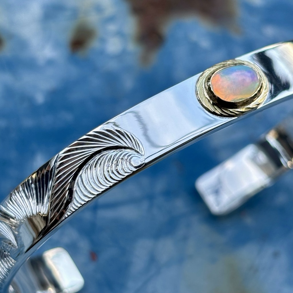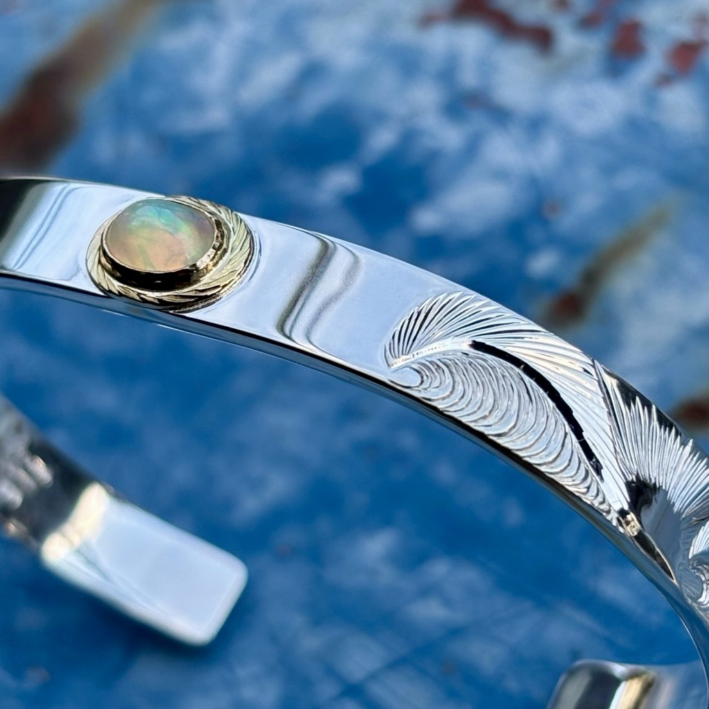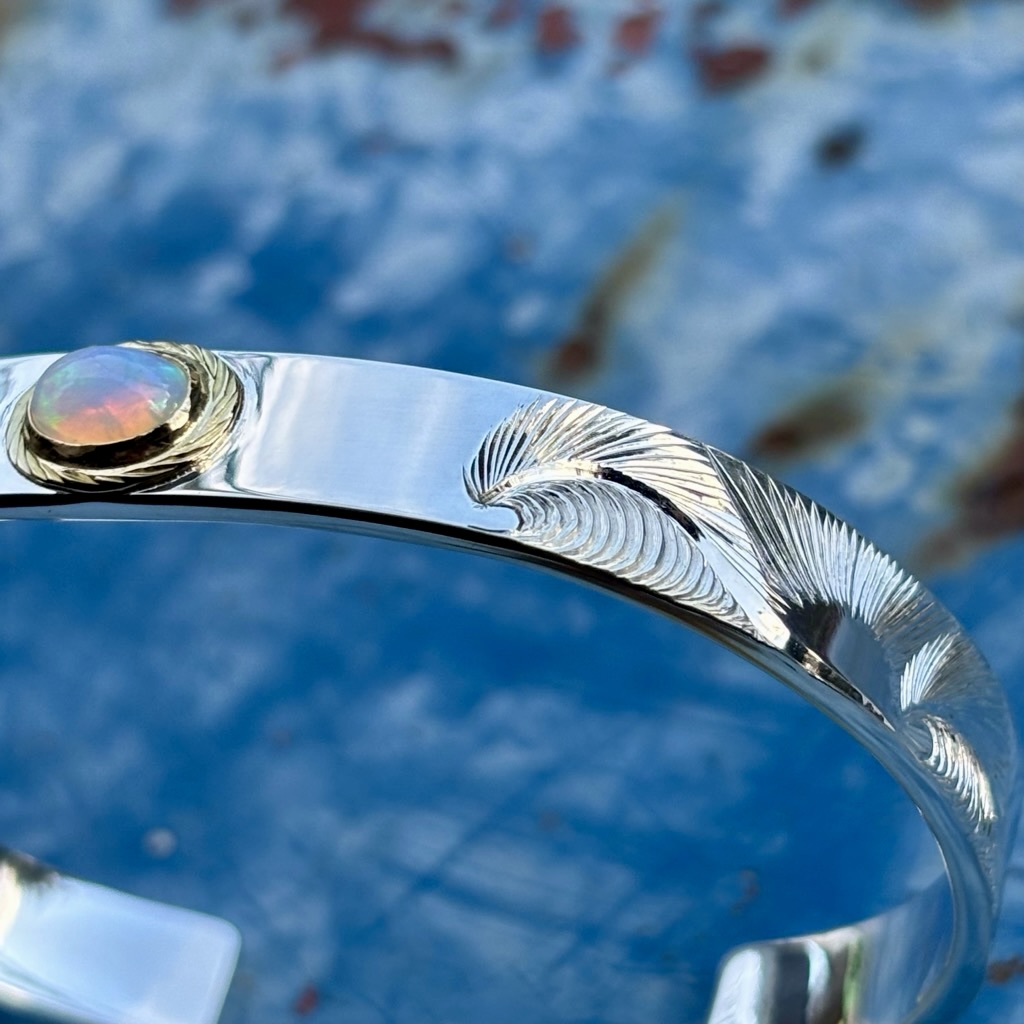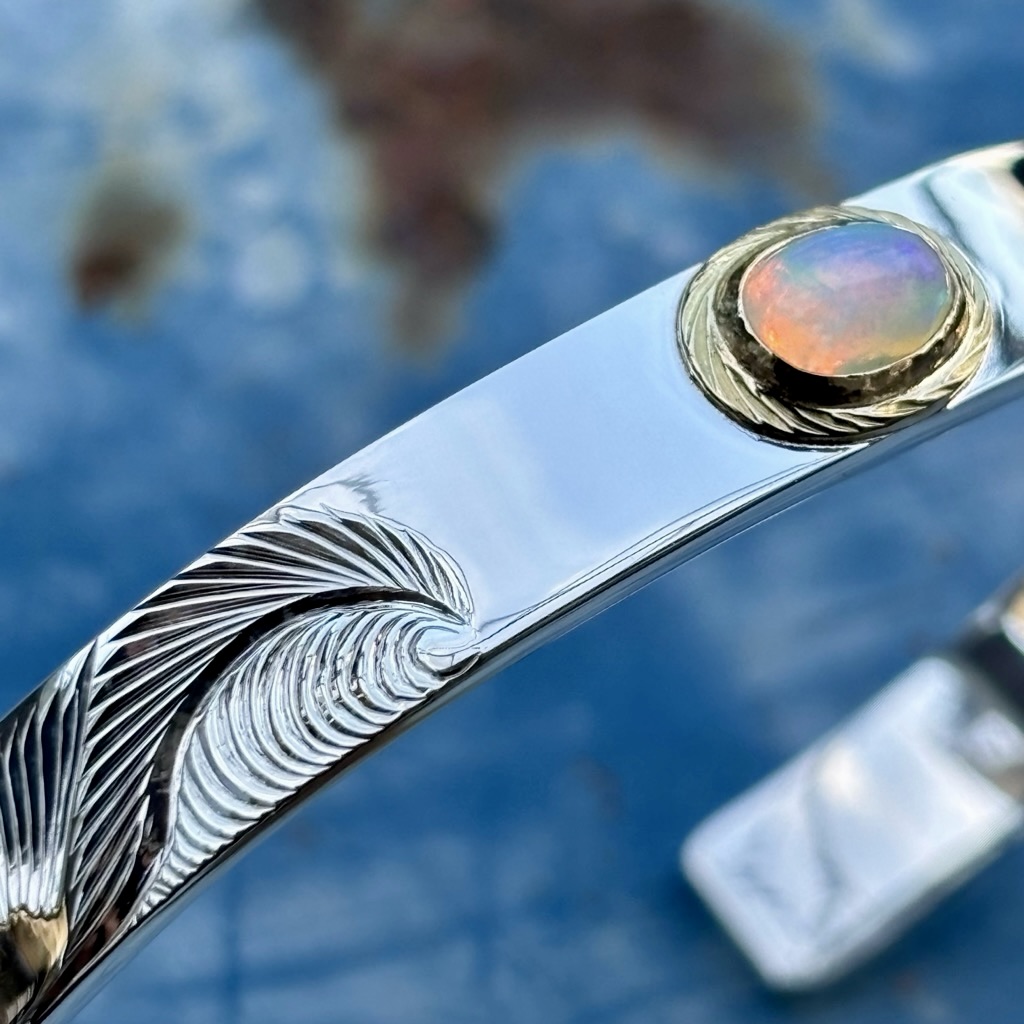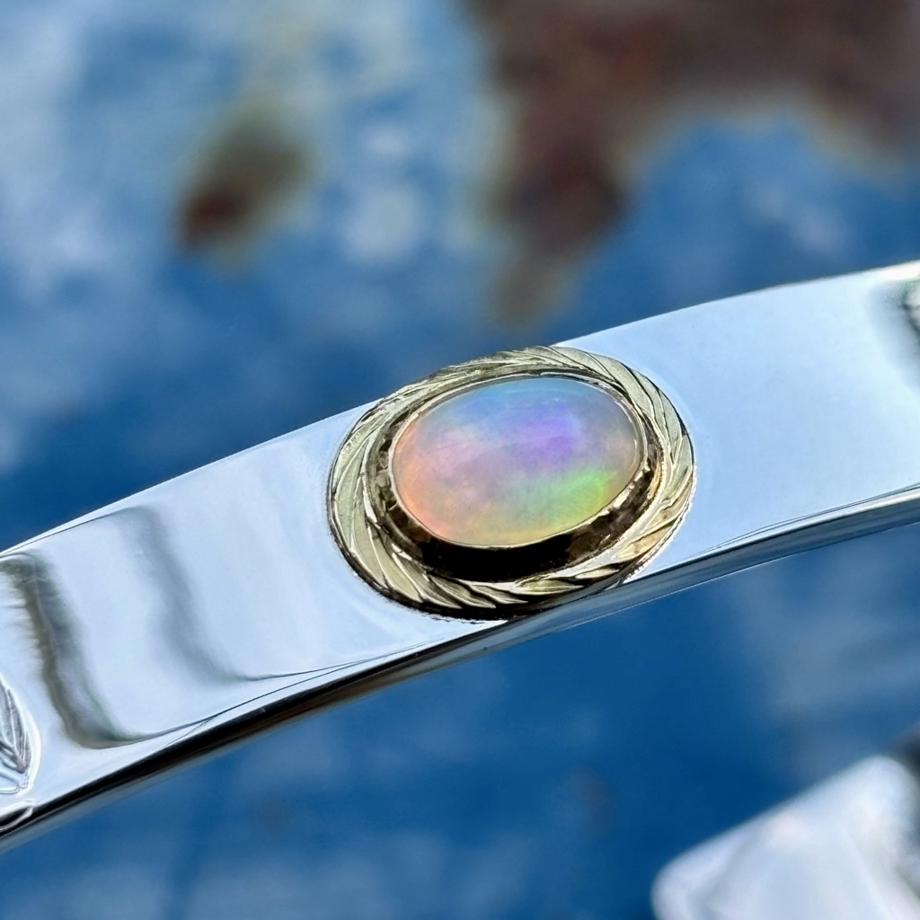 【特注品】5×7mmオパール/K18覆輪・ナル&ライジングラー8mmバングル
