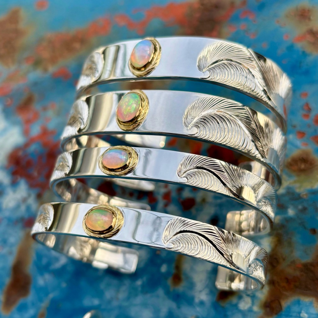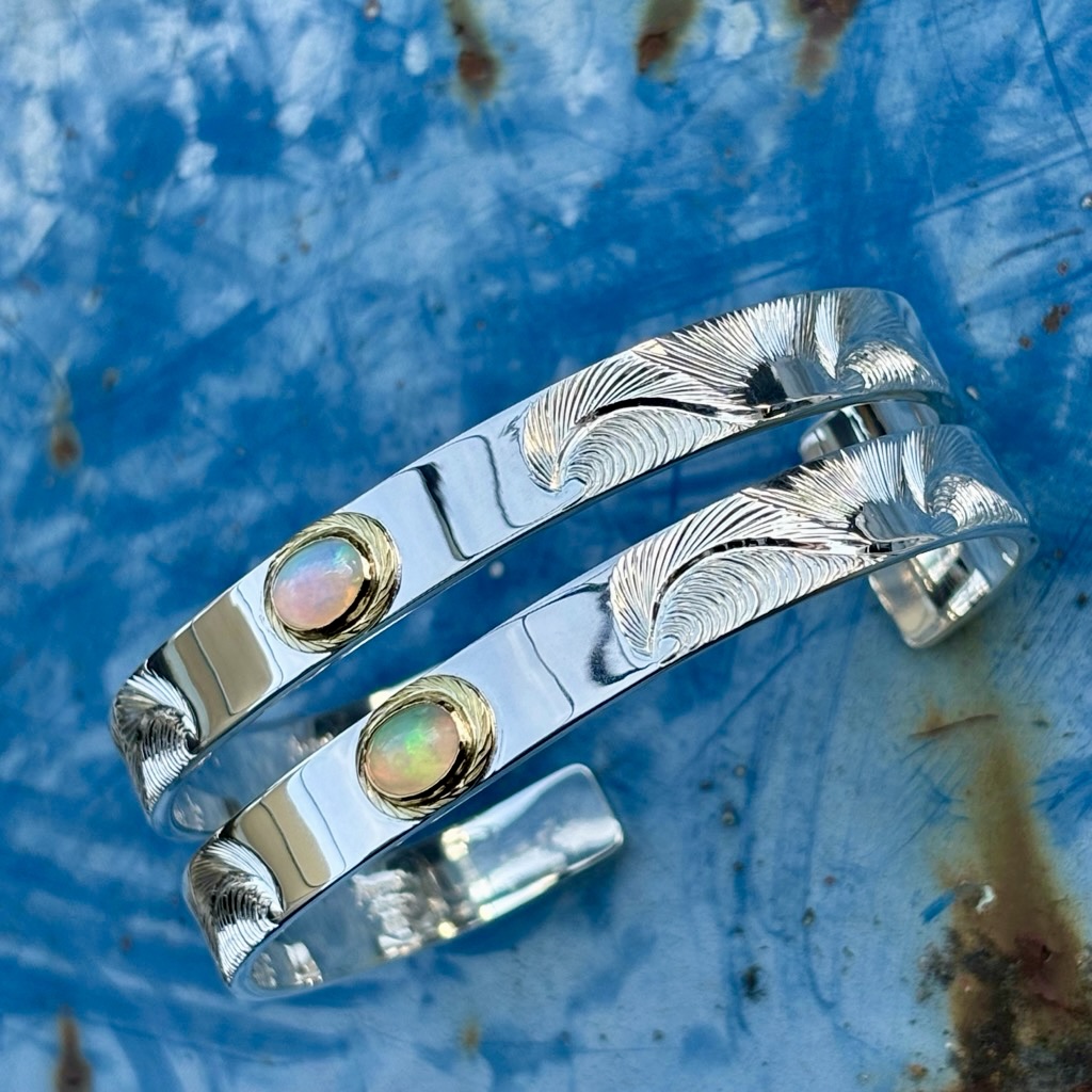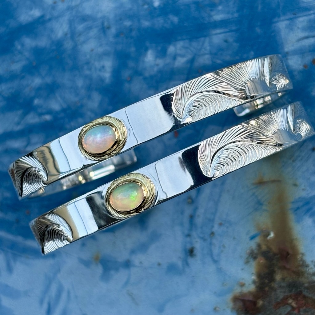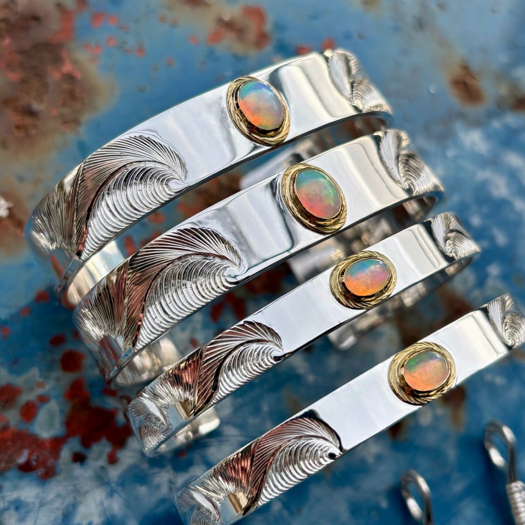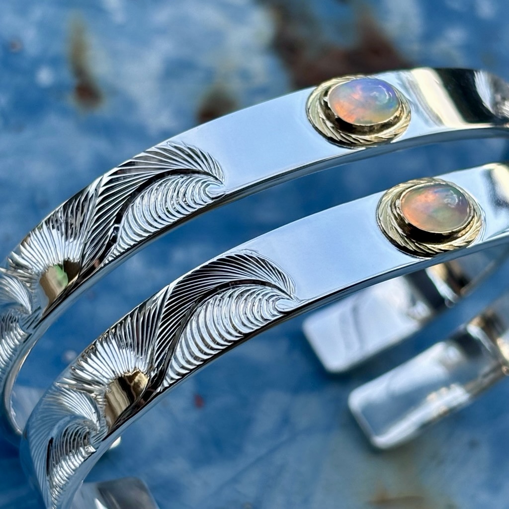 【特注品】5×7mmオパール/K18覆輪・ナル&ライジングラー8mmバングル