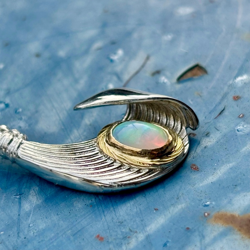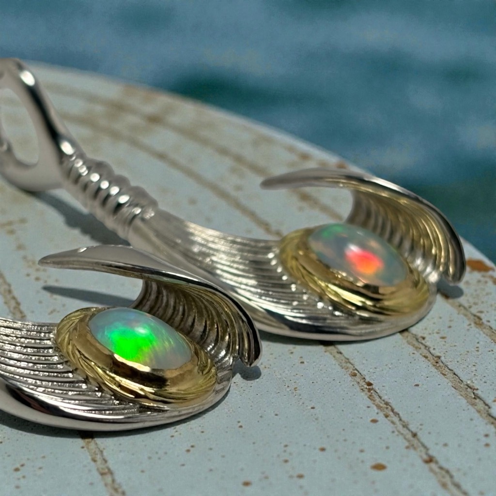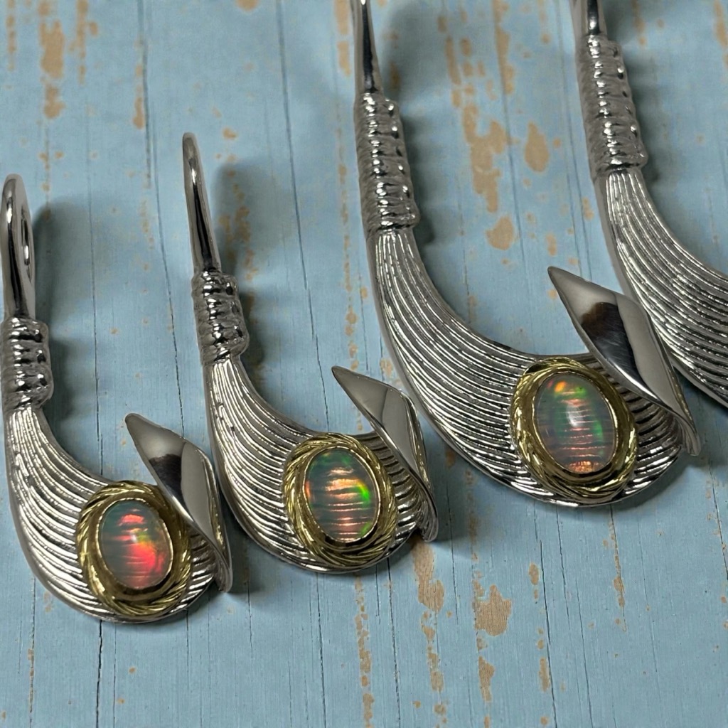 【特注品】Makanalu「キャッチ・ザ・ウェーブ」ペンダントM(オパール/K18覆輪)¥ 100,100 (税込) 通常アイテムのラリマーをオパールにした、イベント時限定販売のカスタム仕様です。 【マテリアル】 ・シルバー925 ・K18イエローゴールド ・オパール 【サイズ】(最大値慨寸mm※) 38×16 ※本体(チェーン通す部分を含む)最大値 ※各種加工により完成時実寸は異なる場合がございます。 ※単品画像以外は参考例です(チェーン・その他パーツは付属しておりません) 質問・見積り 在庫切れ 商品コード: e244opal カテゴリー: 特注アイテム 追加情報 追加情報 モチーフ・デザイン カイ/Kai(海)・ナル/Nalu(波), マカウ(フィッシュフック)/Makau 関連商品 【特注品】6×8mmオパール/K18覆輪・ナル&ライジングラー12mmバングル ¥ 151,800 (税込) 【春季限定アイテム】K18 ダイヤモンドSakuraモチーフ・ナル&ライジングラーリング(8mm) ¥ 121,000 (税込) 【特注品】Makanalu「キャッチ・ザ・ウェーブ」ペンダントM(ラリマー/K18覆輪/ダイヤモンド一連) ¥ 215,600 (税込) 【特注品】K18 KaiLaモチーフ12mm “The one Ocean”バングル(太陽・星K18カスタム) ¥ 231,000 (税込)