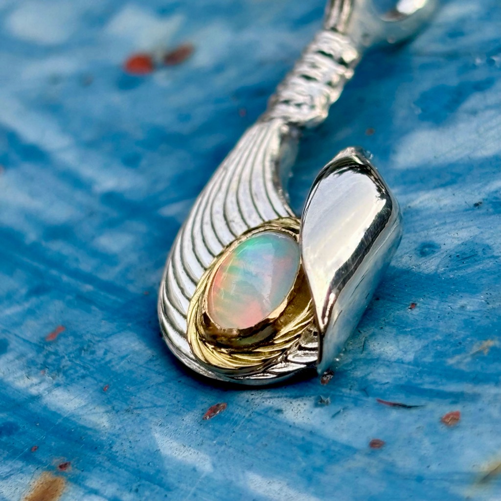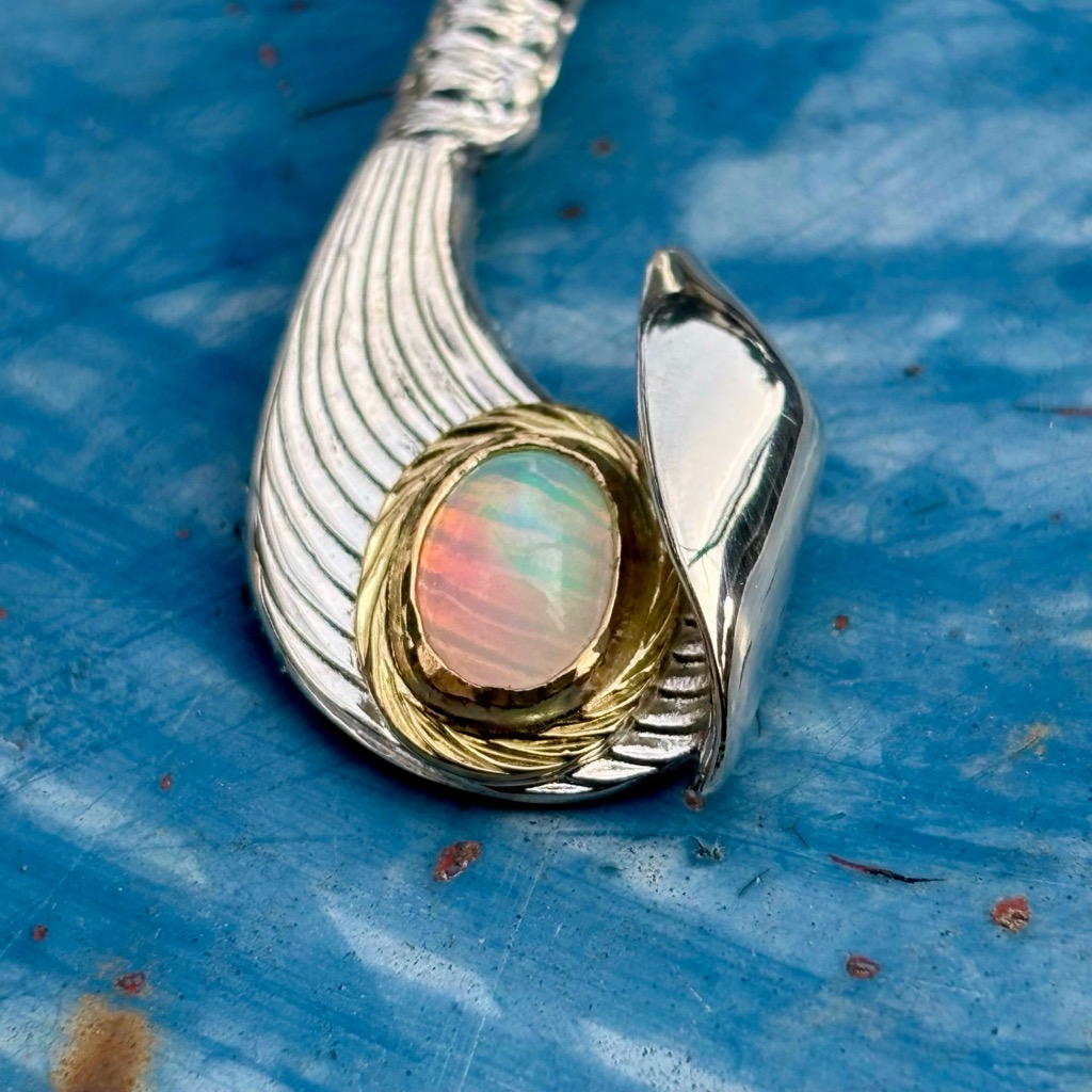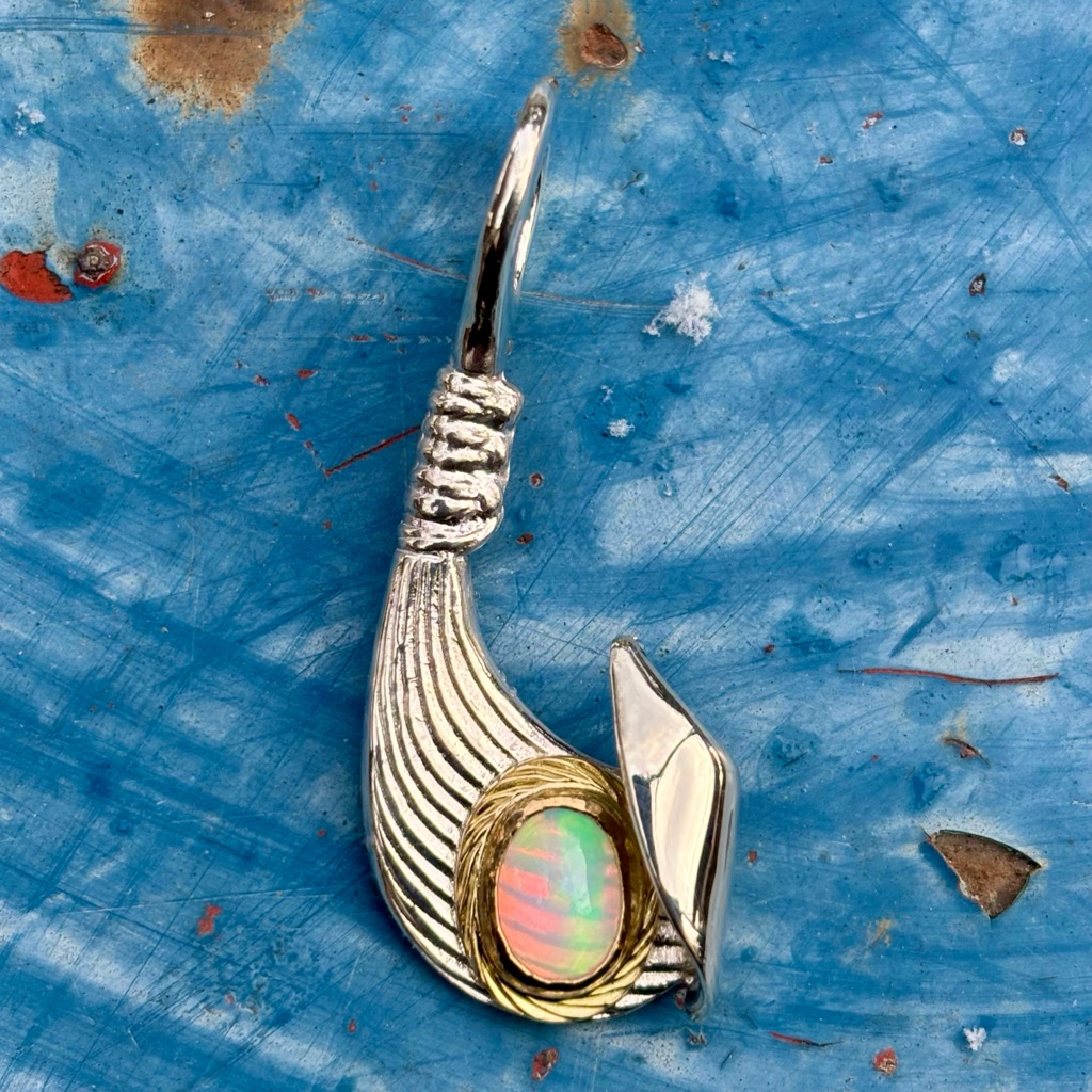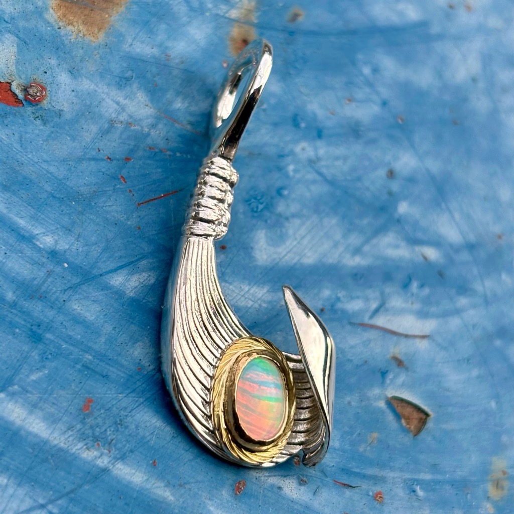 【特注品】Makanalu「キャッチ・ザ・ウェーブ」ペンダントM(オパール/K18覆輪)¥ 100,100 (税込) 通常アイテムのラリマーをオパールにした、イベント時限定販売のカスタム仕様です。 【マテリアル】 ・シルバー925 ・K18イエローゴールド ・オパール 【サイズ】(最大値慨寸mm※) 38×16 ※本体(チェーン通す部分を含む)最大値 ※各種加工により完成時実寸は異なる場合がございます。 ※単品画像以外は参考例です(チェーン・その他パーツは付属しておりません) 質問・見積り 在庫切れ 商品コード: e244opal カテゴリー: 特注アイテム 追加情報 追加情報 モチーフ・デザイン カイ/Kai(海)・ナル/Nalu(波), マカウ(フィッシュフック)/Makau 関連商品 【特注品】6×8mmオパール/K18覆輪・ナル&ライジングラー12mmバングル ¥ 151,800 (税込) 【春季限定アイテム】K18 ダイヤモンドSakuraモチーフ・ナル&ライジングラーリング(8mm) ¥ 121,000 (税込) 【特注品】Makanalu「キャッチ・ザ・ウェーブ」ペンダントM(ラリマー/K18覆輪/ダイヤモンド一連) ¥ 215,600 (税込) 【特注品】K18 KaiLaモチーフ12mm “The one Ocean”バングル(太陽・星K18カスタム) ¥ 231,000 (税込)