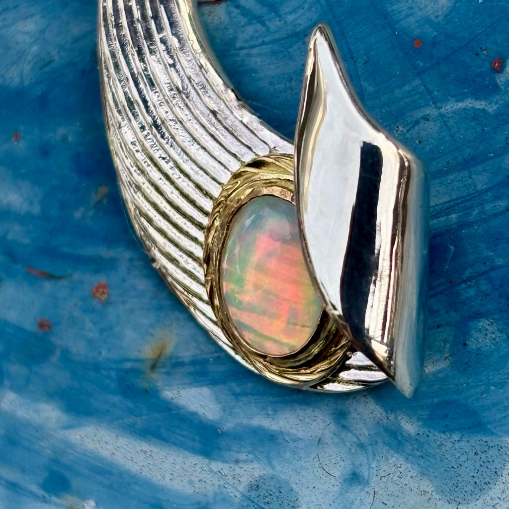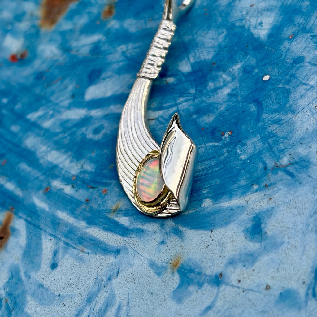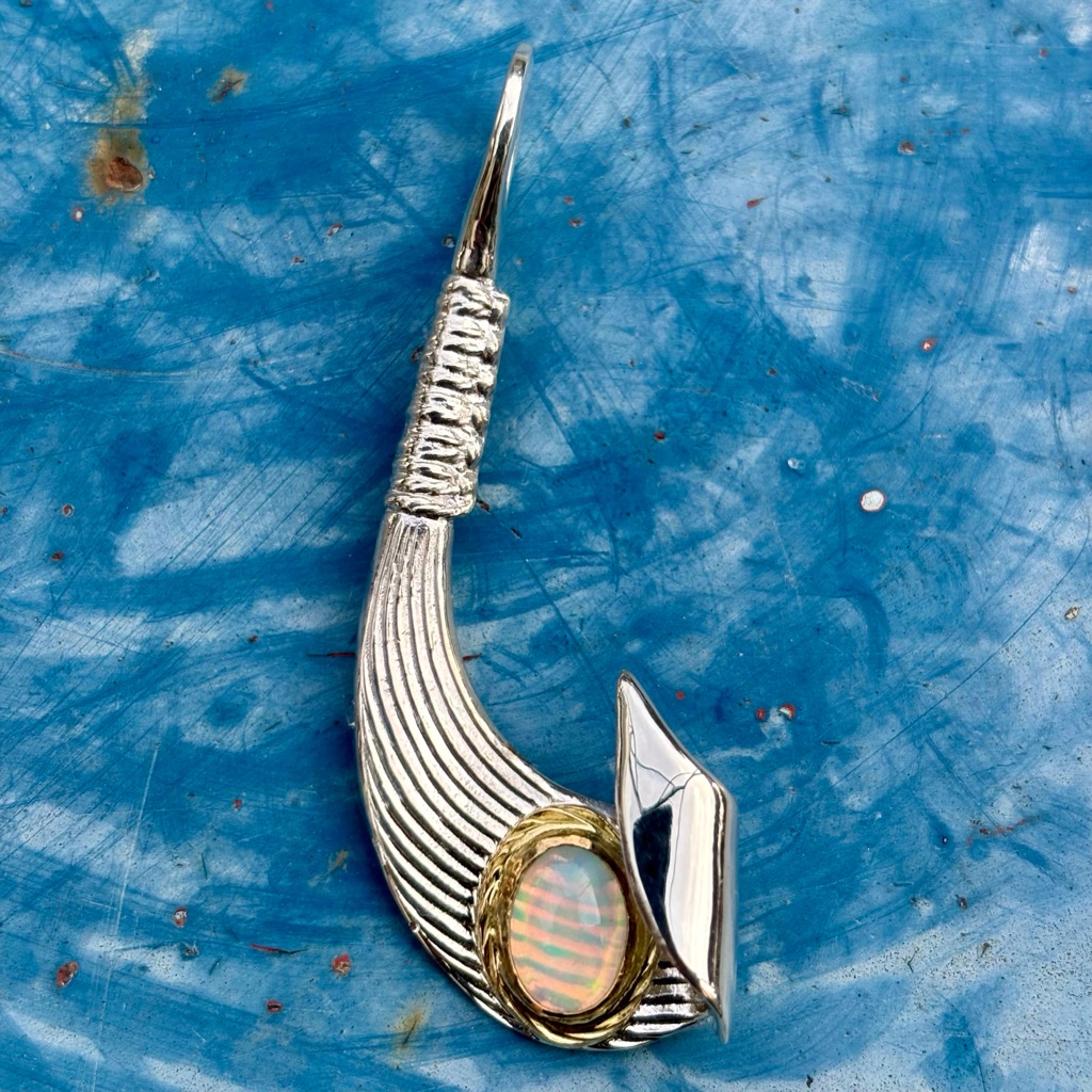 【特注品】Makanalu「キャッチ・ザ・ウェーブ」ペンダントL(オパール/K18覆輪)¥ 116,600 (税込) 通常アイテムのラリマーをオパールにした、イベント時限定販売のカスタム仕様です。 【マテリアル】 ・シルバー925 ・K18イエローゴールド ・オパール 【サイズ】(最大値慨寸mm※) 51×20 ※本体(チェーン通す部分を含む)最大値 ※各種加工により完成時実寸は異なる場合がございます。 ※単品画像以外は参考例です(チェーン・その他パーツは付属しておりません) 質問・見積り 在庫切れ 商品コード: e251opal カテゴリー: 特注アイテム 追加情報 追加情報 モチーフ・デザイン カイ/Kai(海)・ナル/Nalu(波), マカウ(フィッシュフック)/Makau 関連商品 【春季限定アイテム】K18 ダイヤモンドSakuraモチーフ・ナル&ライジングラーバングル(12mm) ¥ 165,000 (税込) 【春季限定アイテム】K18 ダイヤモンドSakuraモチーフ・ナル&ライジングラーバングル(8mm) ¥ 125,400 (税込) 【特注品】6×8mmオパール/K18覆輪・ナル&ライジングラー12mmバングル ¥ 151,800 (税込) 【特注品】Makanalu「キャッチ・ザ・ウェーブ」ペンダントM(オパール/K18覆輪) ¥ 100,100 (税込)